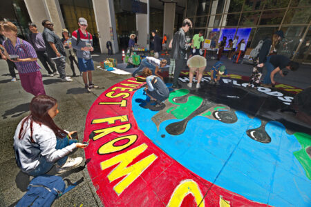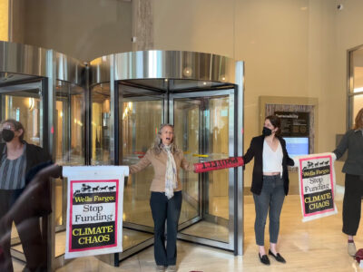 In addition to the action that led to arrests, the community event included live music and carnival games, a collaborative mural creation, and free food. This action is part of a continued push from activists to hold Wells Fargo accountable for their reckless funding of the fossil fuel industry, even as the climate crisis worsens to life-threatening levels before our eyes.