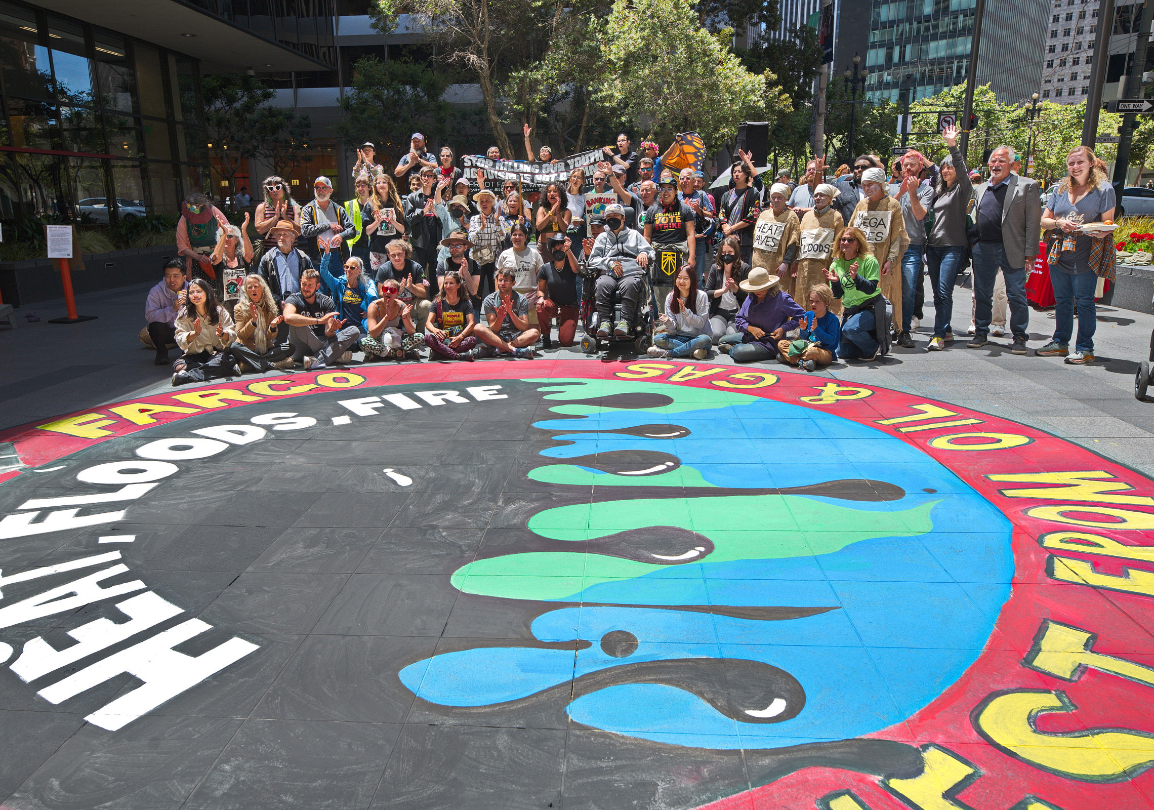 In addition to the action that led to arrests, the community event included live music and carnival games, a collaborative mural creation, and free food. This action is part of a continued push from activists to hold Wells Fargo accountable for their reckless funding of the fossil fuel industry, even as the climate crisis worsens to life-threatening levels before our eyes.